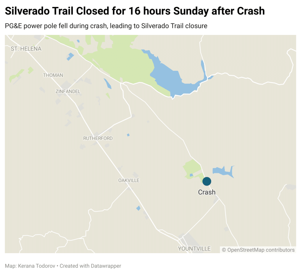 Crash topples power pole on Silverado Trail
